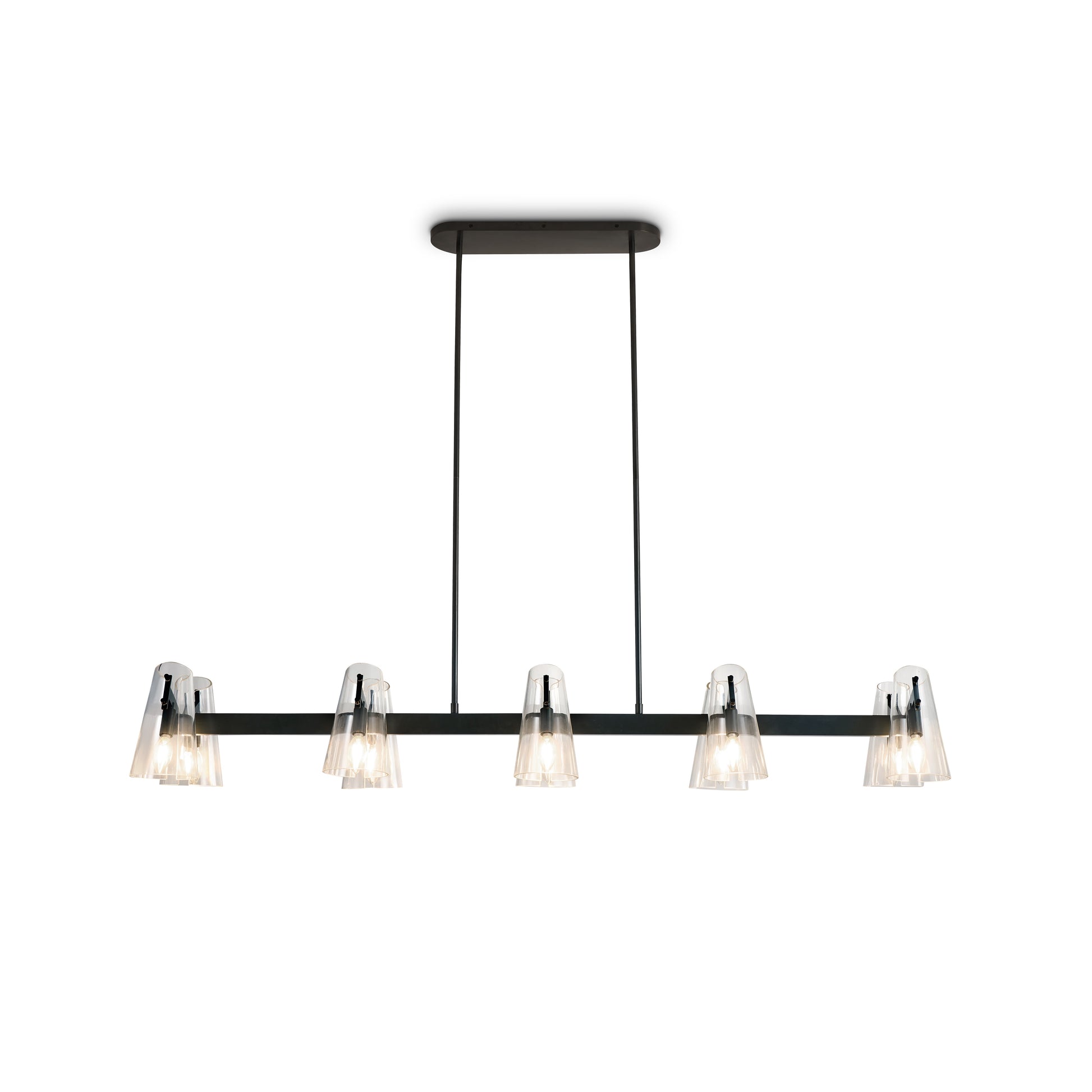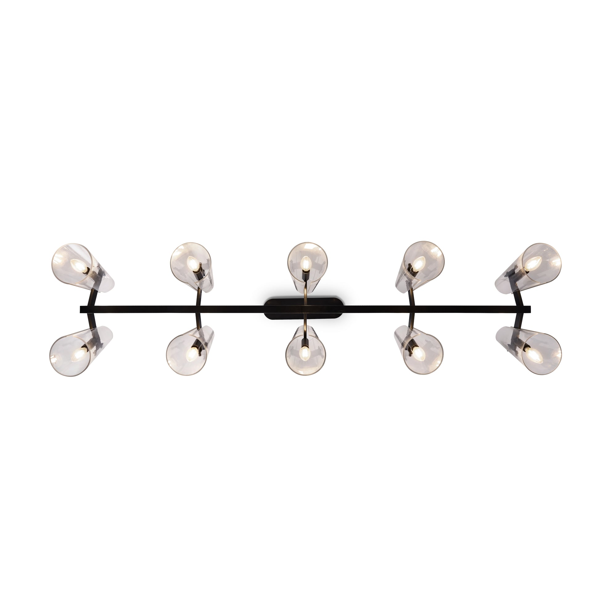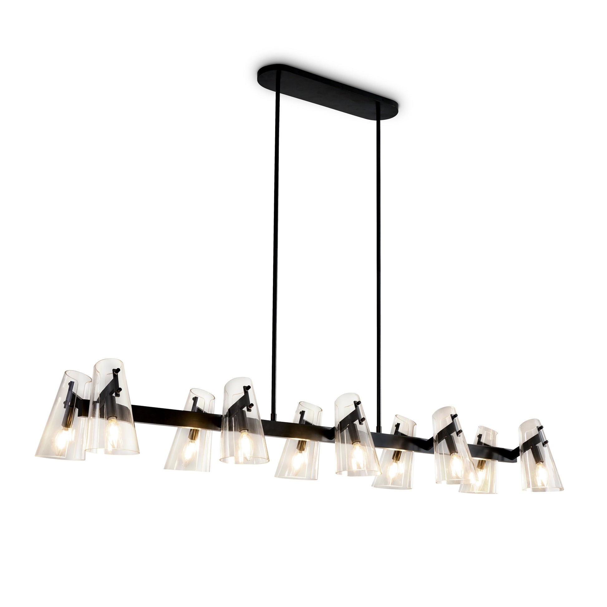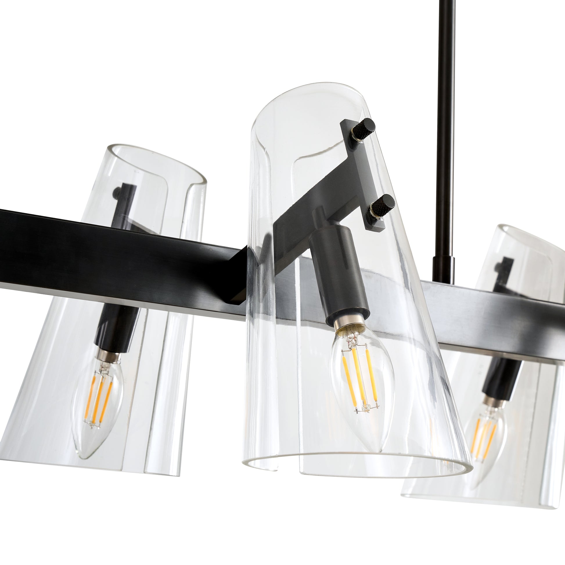 Shown with a Black Bronze canopy / body, and clear glass shades.