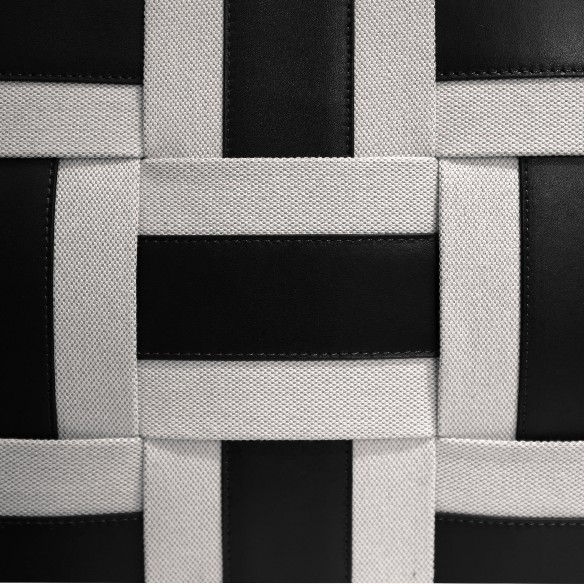 It makes an elegant and refined statement while also having a padded 15” laptop compartment, an interior zipper, and is fully lined. The exterior is crafted from dark brown genuine leather and ivory canvas.